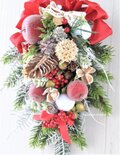 sw.1 スワッグ 赤リボンとりんごと木の実:クリスマス 白 グリーン シルバー