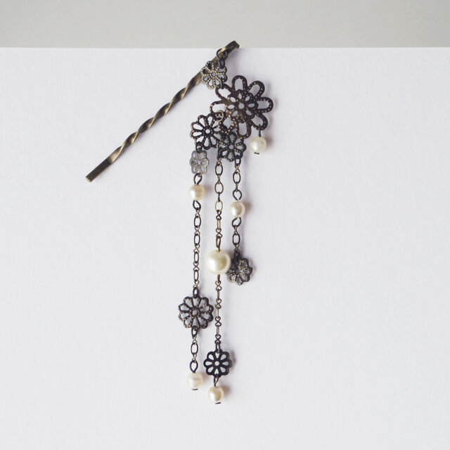 アンティーク調カラーの金具で繊細に組み上げたヘアピン