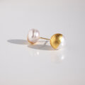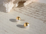 シンプル+α 金箔パール[ピアス] ゴールド&ホワイト 10mm 淡水パール一粒スタッドピアス アレルギーフリー