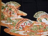 繊細で美しく、上品で華々しい扇が奏で長れる、素敵なアンティーク着物をほどいて、画像デザインのフォーマルワンピースをお作りいたします。