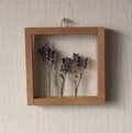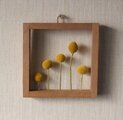 アンティーク調に仕上げた自家製フレームにドライフラワーやプリザーブドフラワーなどをはめこみました。