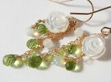 ペリドットで葉、薔薇型に彫られた白蝶貝で薔薇を作ってみました。