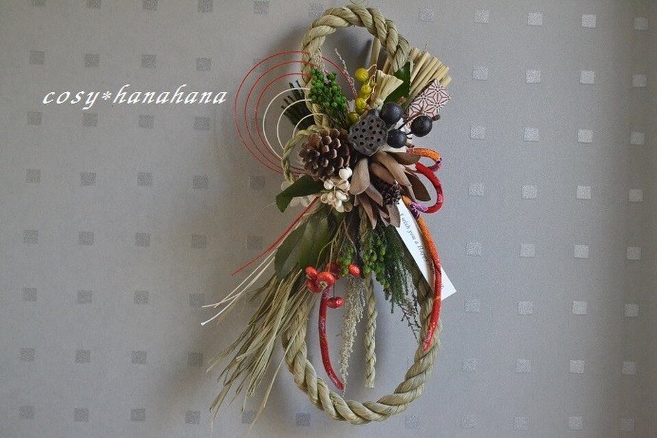 ドライフラワーを使用したしめ縄飾りです。