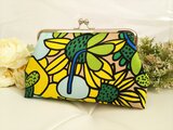 ◆【売り切れ】縁取りフラワーのサイケながま口ポーチイエロー*花柄*ポップ旅行やプレゼントにも