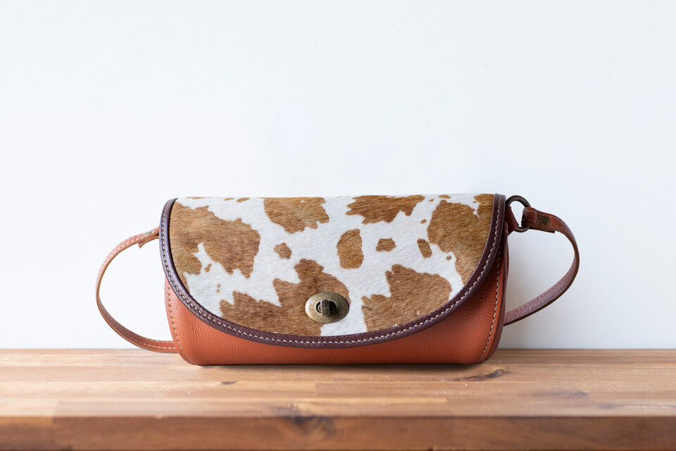 素材2:ハラコ 白×茶(ハラコの色目と柄の配置は、個体差があります。)
