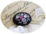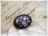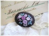 パープルの濃淡で刺繍したバラにカスミソウを添えて