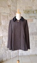 ★送料無料★【エレガント ケープコート】 アンティーク レンガ ブラウン×クラッシュ黒ベロア 金ボタン