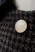 繊細な、紋章のような細工が施されていて、コインのようなボタン。
