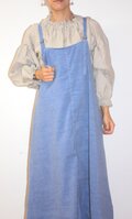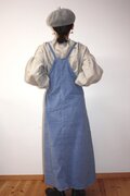 きれいなAラインの着丈長めのワンピースです。ギャザーなしのデザインなので女性らしいフレア-ラインで大人の女性がカジュアルに着こなせるエプロンワンピースです。
