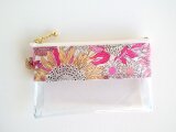 リバティの人気生地(ラミネートつや無)、Small Susanna スモールスザンナ(マゼンタピンク)で中身が見えるミニクリアポーチを作りました。