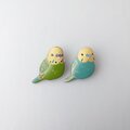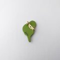 セキセイインコをモチーフにした漆塗りのブローチ。