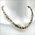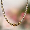 クリスタルカラーの表面にブロンズ加工が施された特殊カラーのチェコビーズ(クリスタルバレンチニット)を使ったネックレス作品です。