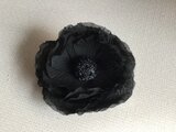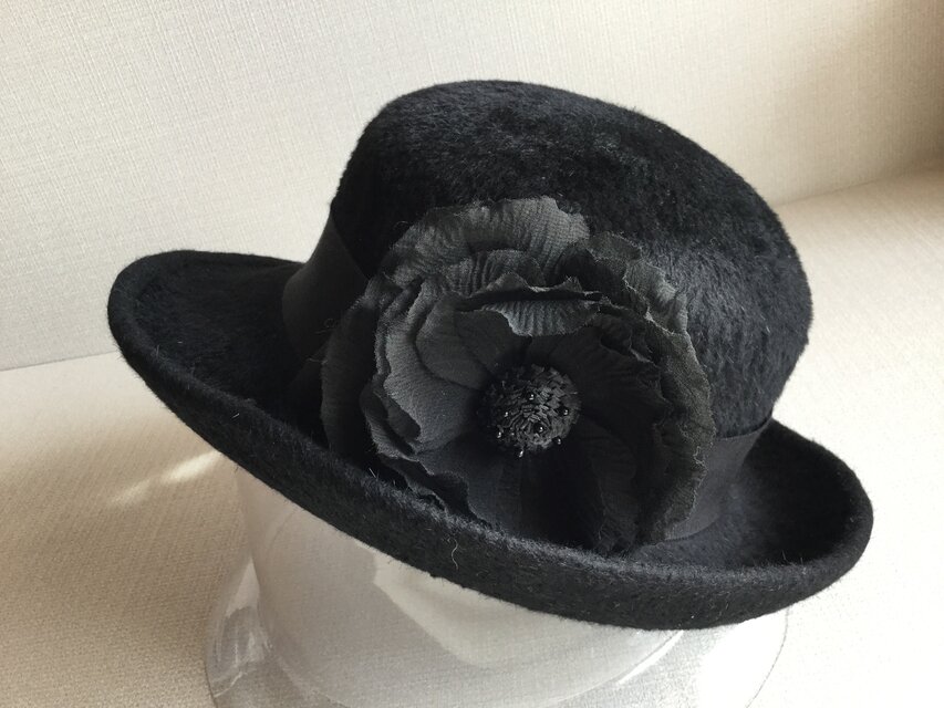 画像ではお帽子に付けていますが同系色の黒のお洋服に合わせていただくと