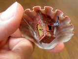 海で拾った貝がらの内側にミニチュアのレンガのおうちをつくりました。