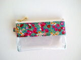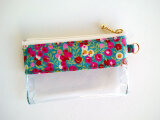 リバティの人気生地(ラミネートつや無)、Wiltshireウィルトシャー(マゼンタピンクとブルーグリーン)で中身が見えるミニクリアポーチを作りました。