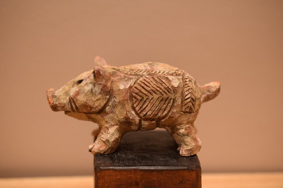 木彫りのイノシシです。