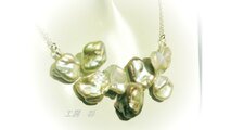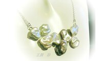 ケシ型という花びらのような淡水パール(本真珠)をつないで豪華なネックレスに仕立てました。