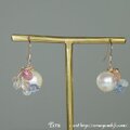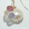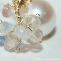 ワイヤーに上質タンザナイトと、極上カット宝石質ローズクォーツ、極上カット宝石質クリスタル、極上カット宝石質スコロライトを使用して、パールを包むように致しました。