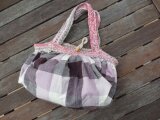 コットンリネンのチェックと生成り無地の両面が楽しめる、一枚布で作ったリバーシブルのグラニーバッグです。