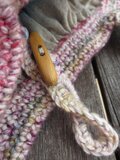 持ち手はイタリアメーカーの柔らかいコットンの段染め糸に、細いリネン糸を絡ませて編み、強度を上げています。