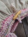 編み作家ゆえ布ものは得意ではなく、パターンをとるわけでもなく、ミシンを使うわけでもございませんが、テント用縫い針とかぎ針で一刺し一刺し、しっかりと作っています。