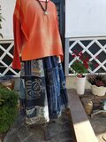 絵がすり、型染め、襤褸などをリメイクしてスカートを作りました。