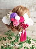 結婚式の前撮り用にお願いしました。 無事に前撮りが完了したので、感想書かせて頂きます。 自分では花の色合いや種類を決めることができず、色打掛の写真を元に作って頂きました。 完成品は依頼した通り、上品で存在感のある綺麗な花飾りでした。 実際に色打掛を着てヘアメイクさんに付けてもらったら、着物とピッタリ! 大大大満足です! お願いして本当に良かったです。 ありがとうございました。