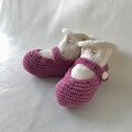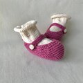 ローズピンク色のストラップシューズタイプのブーティーと、シンプルな後ろリボンのブーティーです。重ねてセットで履いても、別々で履いていただいても可愛いです。