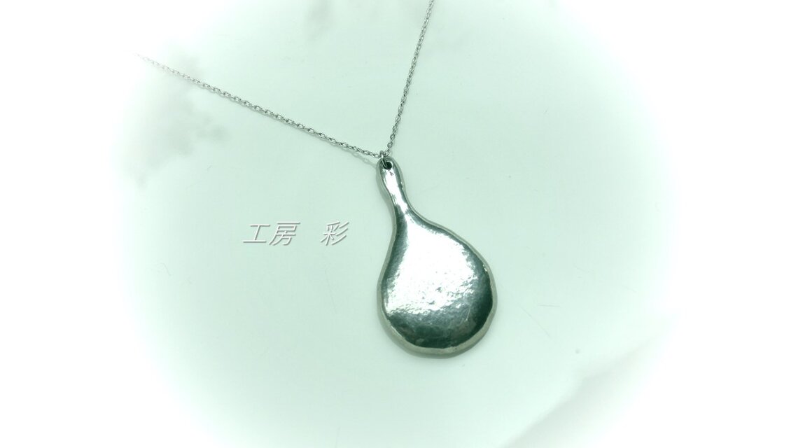 上質な錫(すず)を溶かしてポタリとたらし、磨き上げてシンプルなペンダントに仕立てました。