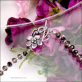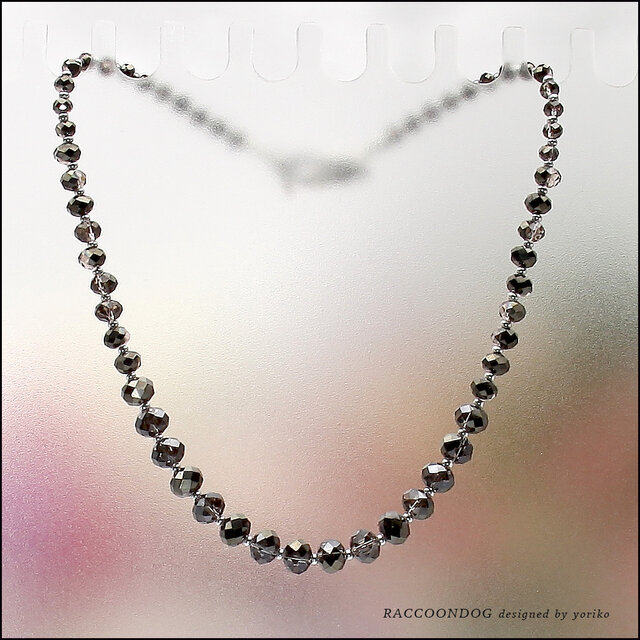 ビーズ,ビーズアクセサリー,ビーズアクセ,ビーズネックレス,ネックレス,シルバー,スモーキーピンクハーフコート,花,カットガラスビーズ