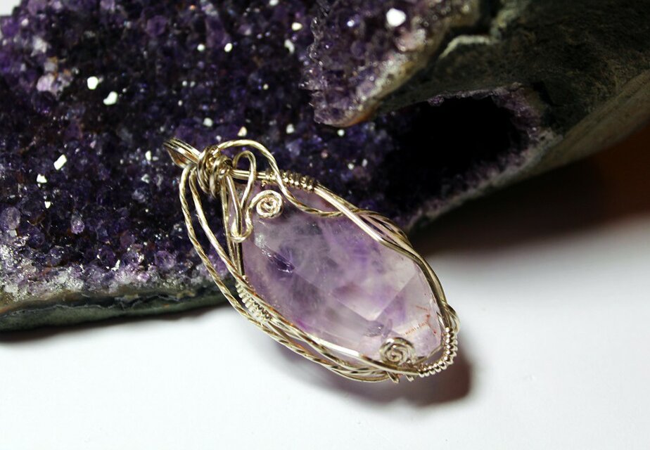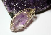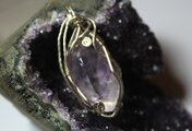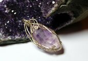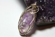 透明度が高く、美しい紫が点在する上品なブランドバーグアメジストをシルバーのワイヤーで巻きました。