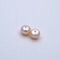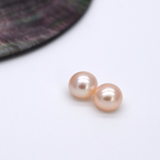 片穴 淡水真珠 パール ペア 2粒 6.5~7mm ボタン フラット ピンクオレンジ系 ルース パーツ