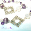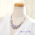 上品な輝きの淡い紫のボタンカットガラスが形作る大小の花が胸元を飾ります♪