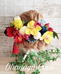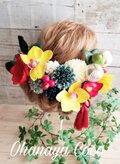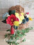 結婚式の前撮り用にお願いしました。 無事に前撮りが完了したので、感想書かせて頂きます。 自分では花の色合いや種類を決めることができず、色打掛の写真を元に作って頂きました。 完成品は依頼した通り、上品で存在感のある綺麗な花飾りでした。 実際に色打掛を着てヘアメイクさんに付けてもらったら、着物とピッタリ! 大大大満足です! お願いして本当に良かったです。 ありがとうございました。