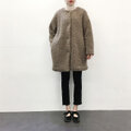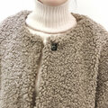 小さめの丸首のシンプルなコートで、カジュアルで気軽に羽織って頂けます。