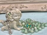 タンザニア産グリーンフェルスパー(流通名はグリーンムーンストーン)のロザリオです。
