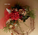 真っ赤な空フラワーとタチカズラ、ペッパーベリーなどでChristmas Wreathを作りました。