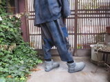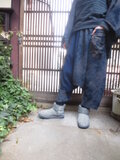 自然染と古布でおとなサルエルパンツ☆暖か木綿でレトロモダン♪