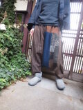 染と古布サルエルパンツ☆縞木綿の着物も粋な古布パッチでおとなのおしゃれパンツ♪