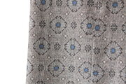 ・こげ茶地に生成りやブルーの柄 大島紬 シルク100%