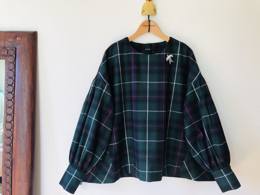 ウール100%タータンチェック柄生地でブラウスを作りました。