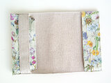 リバティの人気生地、ワイルドフラワーズ Wild Flowers(アイスミント)とハーフリネンの生地で文庫本サイズのブックカバーを作りました。