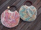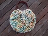 そこからネット編みを渡して、最後は編み絞ってリングにつけてあります。