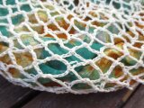 笹から作った丈夫な和紙糸で布の四隅をかぎ針で縁取り、
