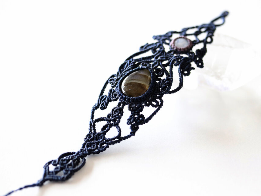 〜 月夜の海 〜ラブラドライト&ブルームーンストーン【マクラメ】