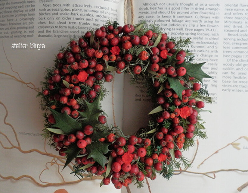 使用材料 プリザーブド/ヒムロスギ、ノイバラの実,プリザーブド/柊など。