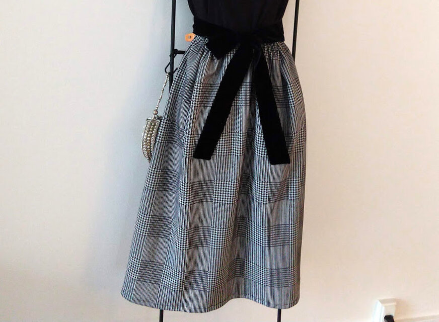★受注制作60~80★北欧グレンチェック★洗練ジャージ・ヒュッゲ★ギャザースカート★