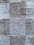 ややグレーがかった薄めのブルーの着物地(裂いたもの)を網代織という織り方で織りあげました。