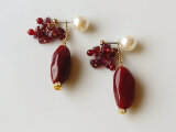 素材:天然石(ガーネット・レッドアゲート)・真鍮・ロンデル・パールキャッチなど