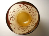 明るい琥珀色の地ガラスの外側に、赤色のガラスを被せた、外被(き)せグラスを使用しています。
